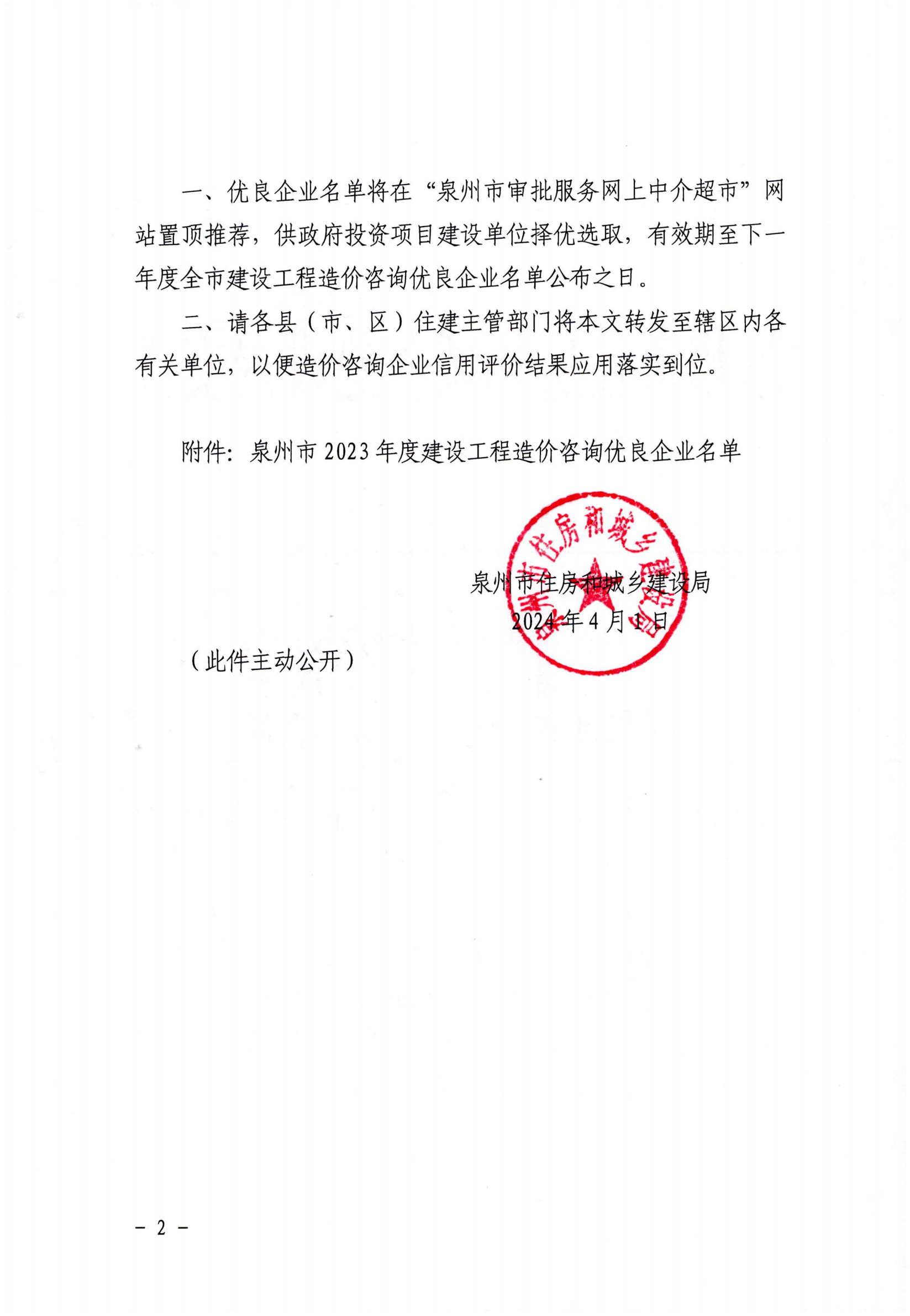 在2023 年度全市建設工程造價咨詢領域的激烈角逐中,喜訊傳來!泉州市住房和城鄉建設局公布的 2023 年度全市建設工程造價咨詢優良企業評選結果揭曉。中宏源建設管理有限公司脫穎而出,成功榮獲“2023 年度建設工程造價咨詢優良企業”稱號。